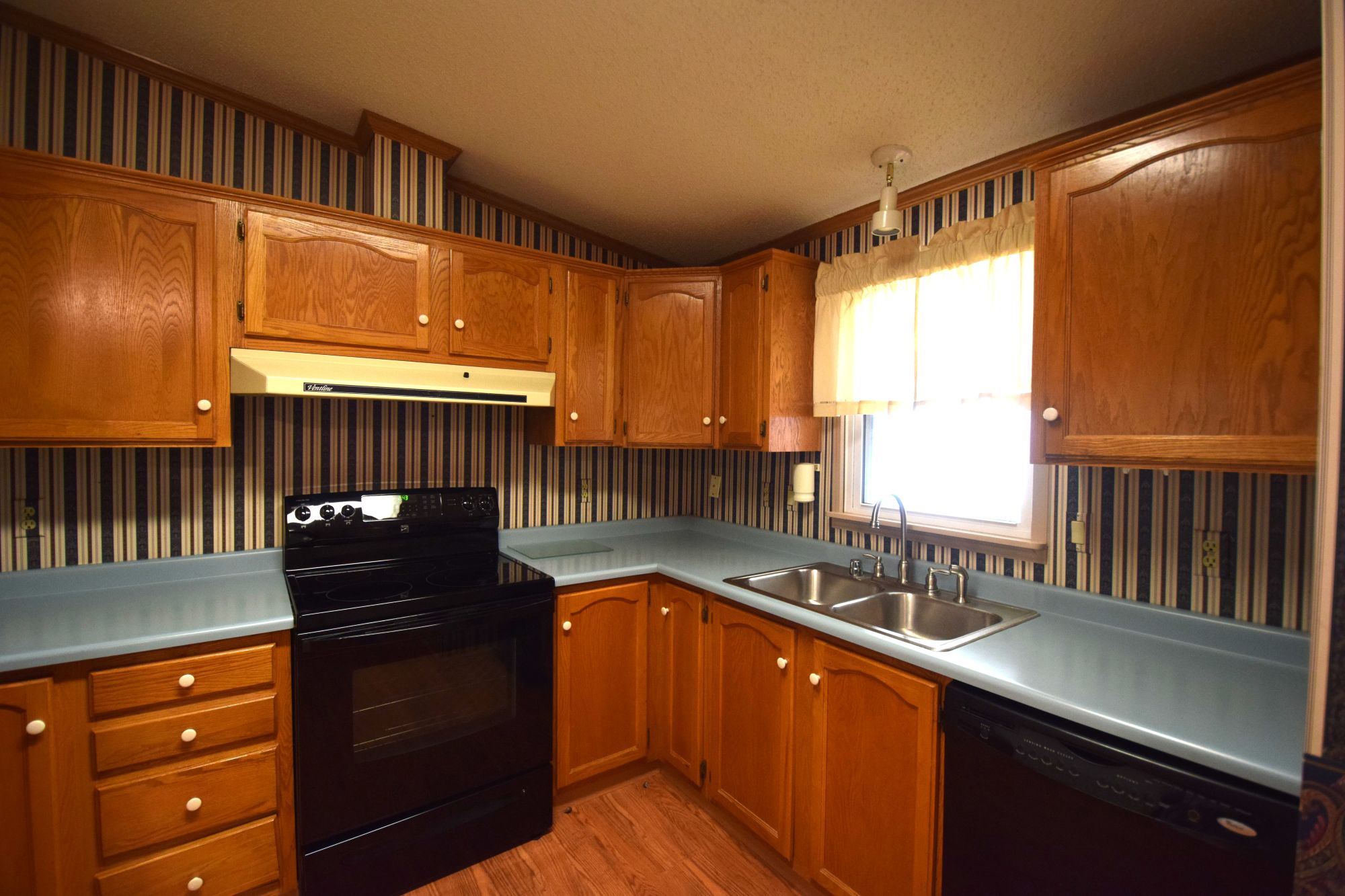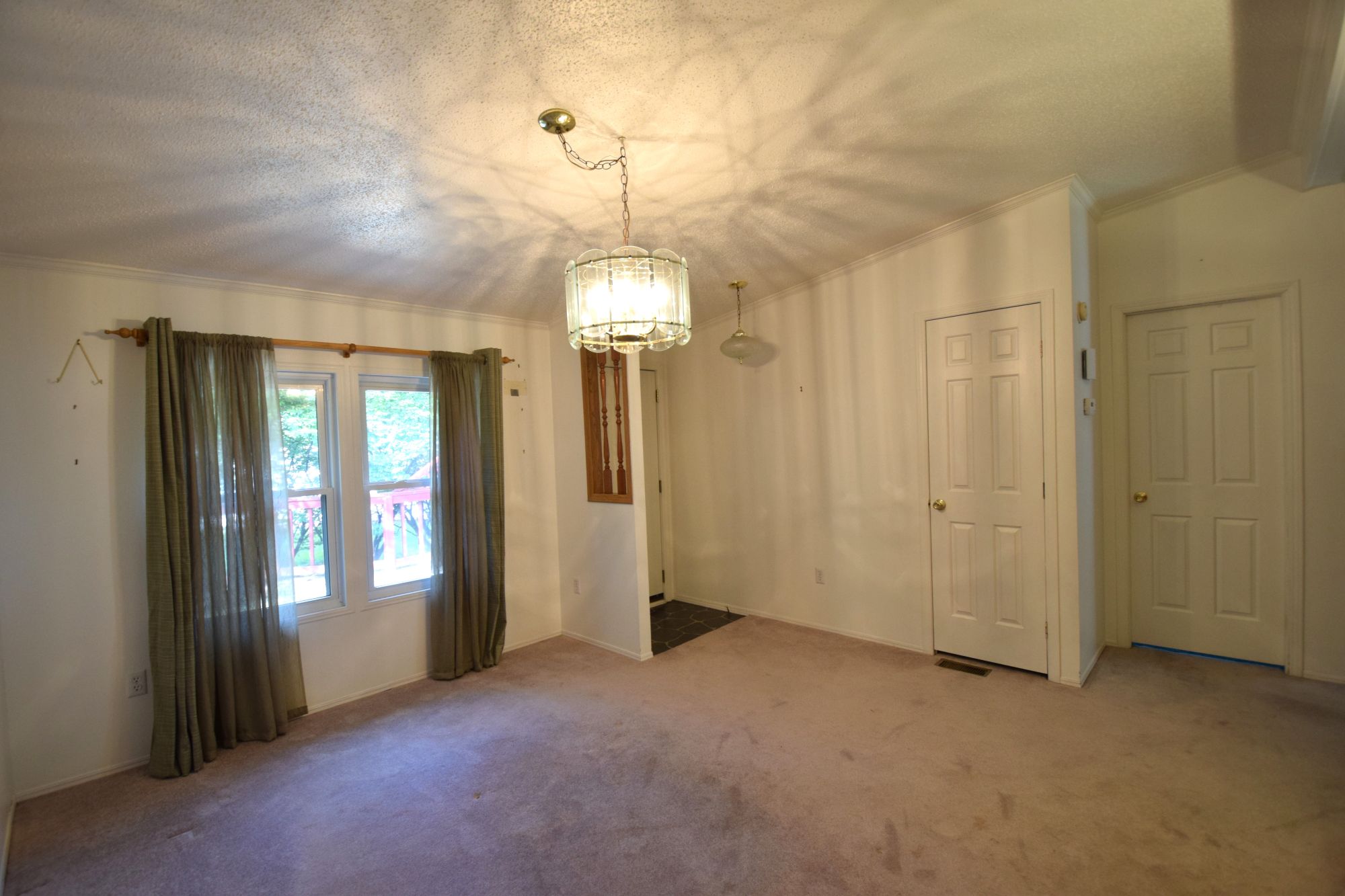 From the front door, you’ll also find easy access to the deck, which just needs a little attention to shine again. The kitchen has room for a dining table, and the attached garage provides convenience—especially during the winter months.
