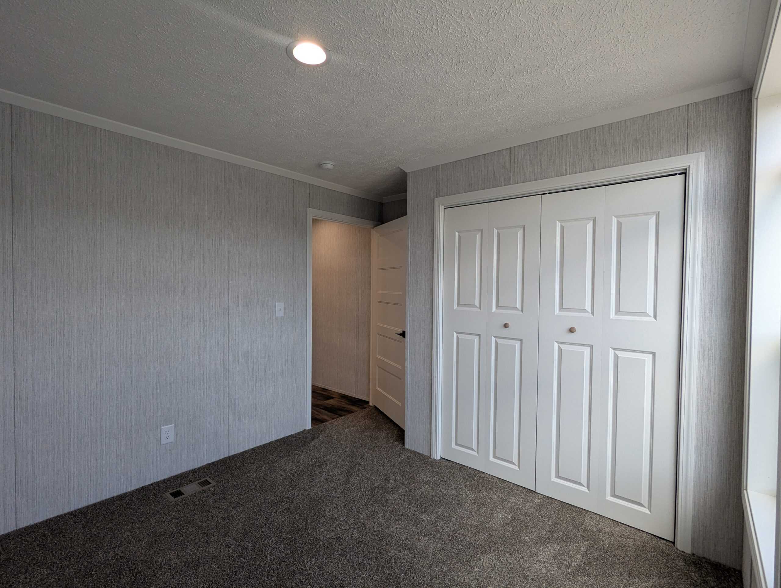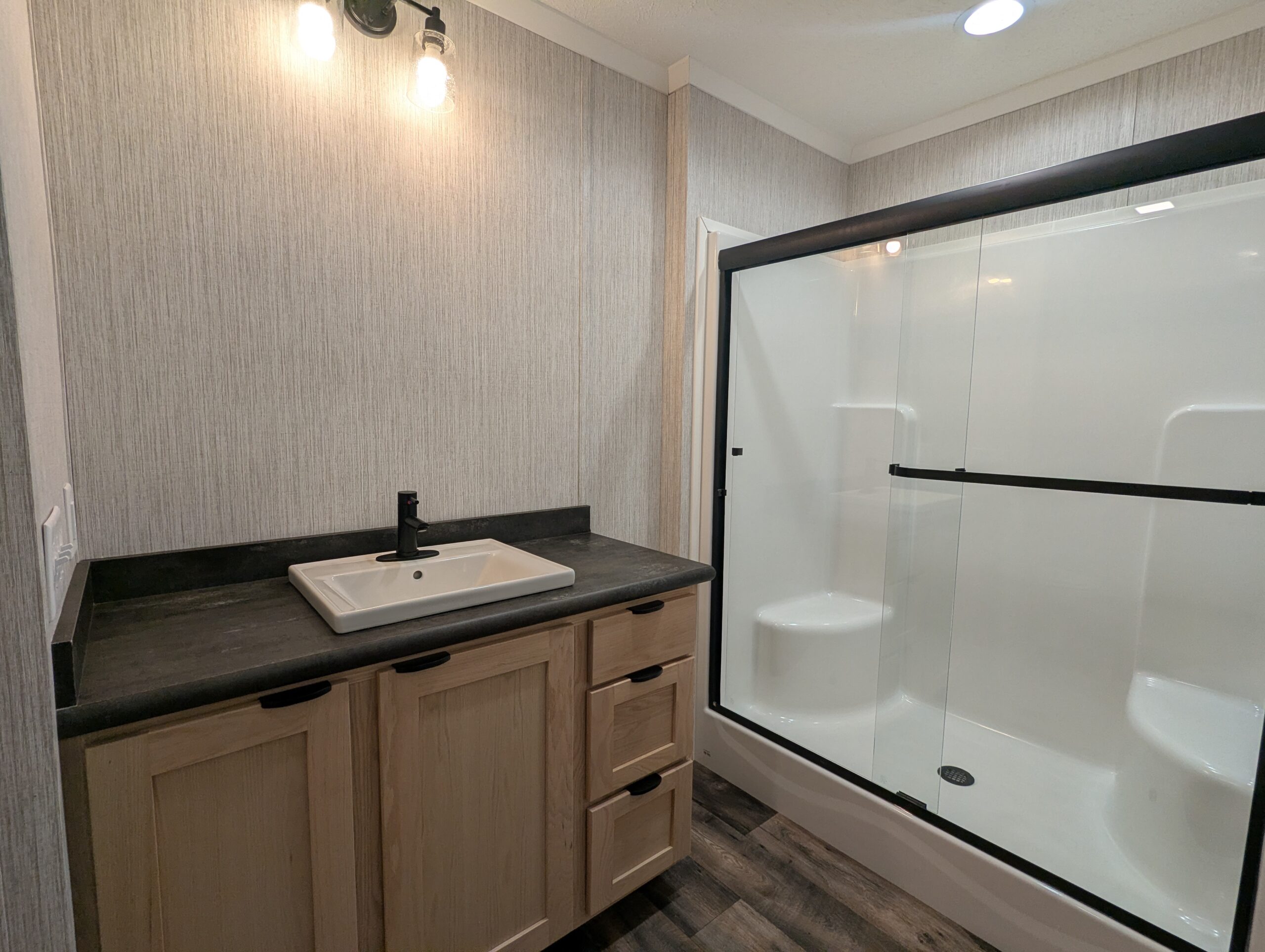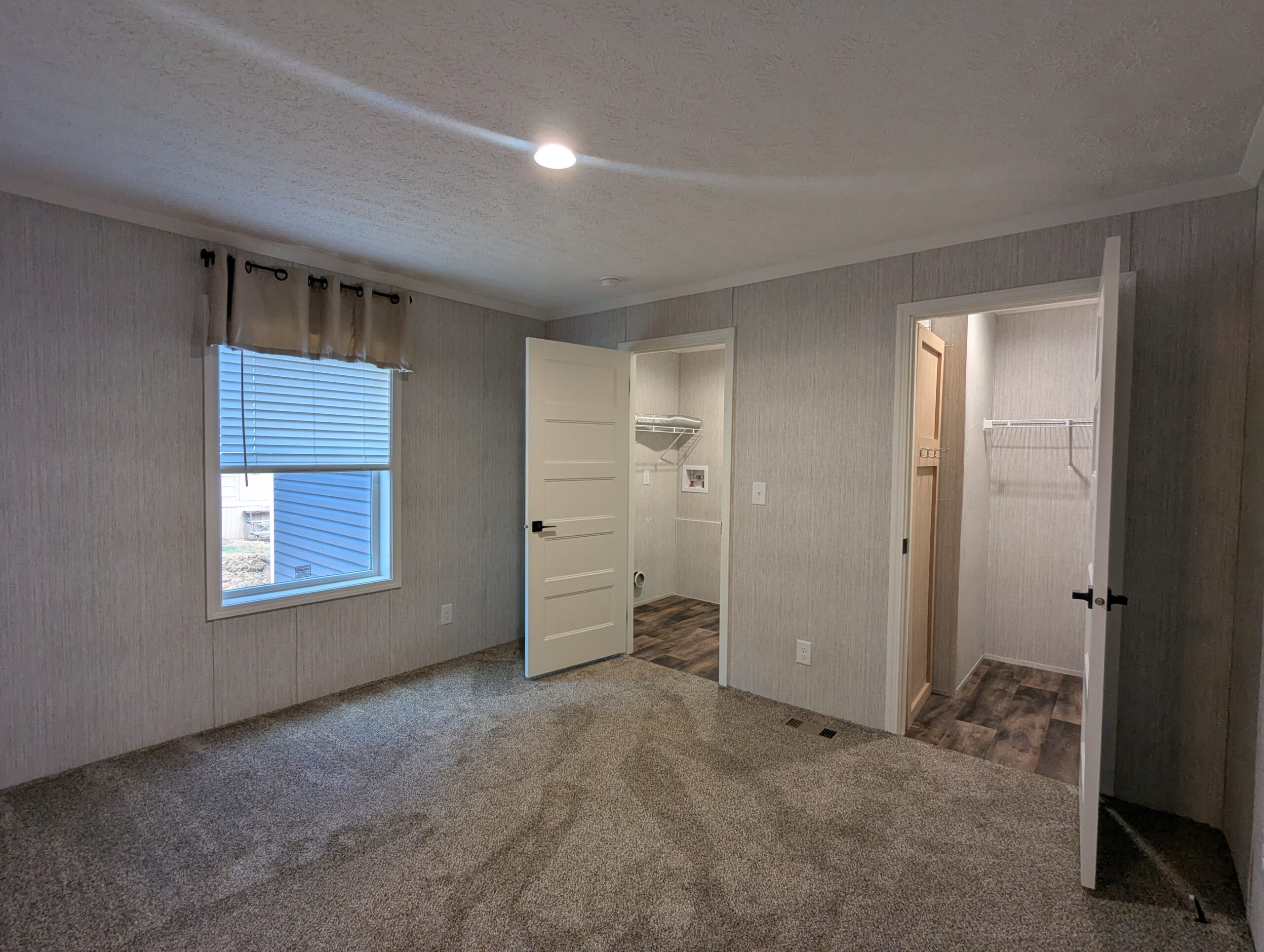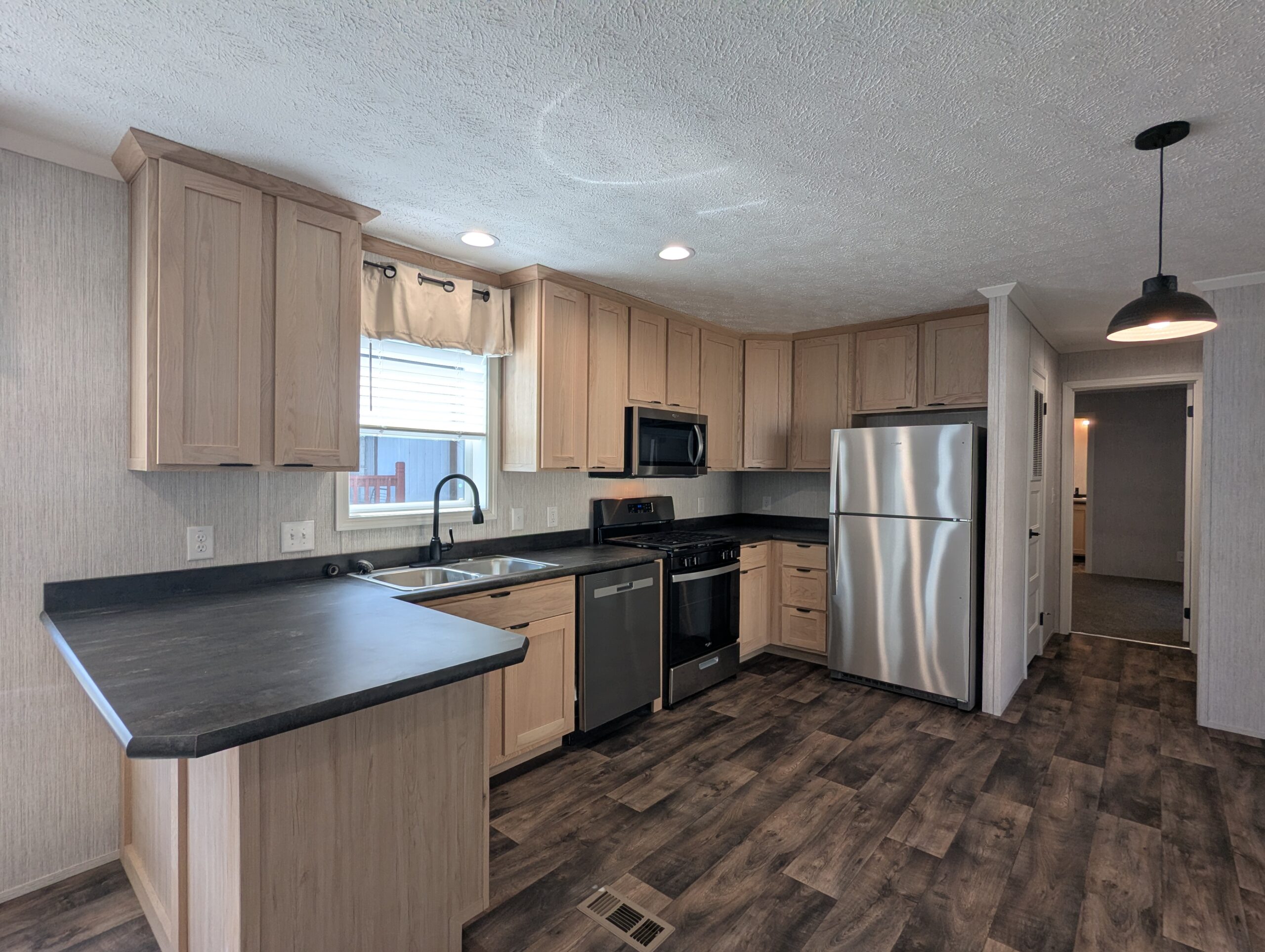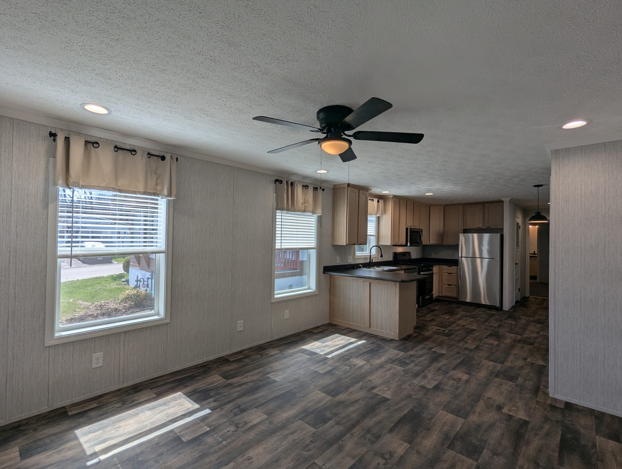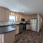 Enjoy low-maintenance, single-floor living in this manufactured home featuring two bedrooms and two full bathrooms. The primary bathroom includes a linen closet, and the home features custom walls throughout. A functional kitchen opens to a bright living area with plenty of natural light. Mirrors in bathroom to be installed.
