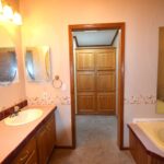 The large main bedroom offers a walk-in-closet, 12′ and a main bathroom suite.